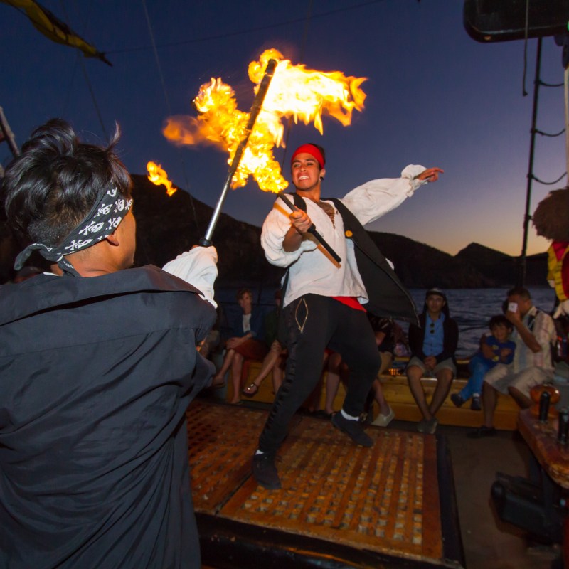 Today everyone can enjoy this legendary vessel and its entertaining tours that everyday we offer our visitors, true adventures of which you can be the protagonist. Come and feel the spirit of those scary characters to their misdeeds, where the famous arch of Cabo San Lucas served as a reference point to divide the sea of Cortes and Pacific Sea, Routes preferred by those who wrote the story tip thunderous sword and guns.