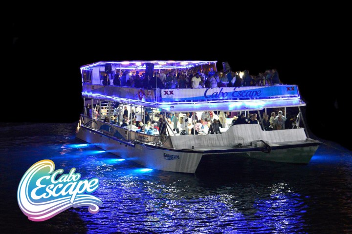 At Cabo Escape every private charter starts with a well maintained, clean open-air double deck catamaran. Our Catamaran is equipped with a level cockpit (lower deck) saloon with a view! Bringing Los Cabo’s beautiful outdoors in. All our food is prepared fresh daily for you right on board in our clean kitchen. Our upper deck is equipped with an open-air bar / lounge area with lots of complimentary beverages to quench your thirst with plenty of dance space. Our crew is your new best friends with a love for the ocean and passion for customer service; we also have an on board MC that will make any tour unforgettable. We value each customer as an individual and member of the Cabo Escape family.